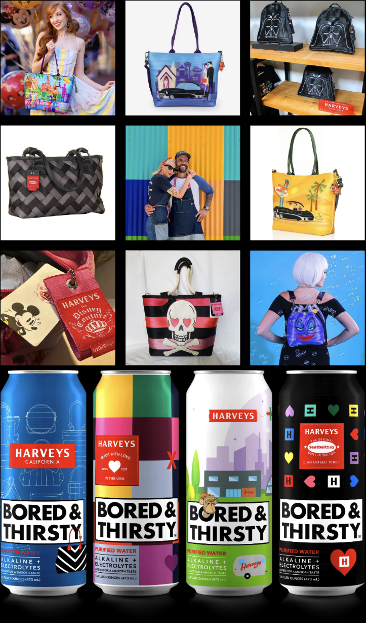 HARVEYS has been making bags and accessories in sunny Southern California since 1997. It all started in a tiny garage with husband and wife Dana and Melanie Harvey. While restoring their classic car Dana made Melanie a handbag with the leftover seatbelt material.
