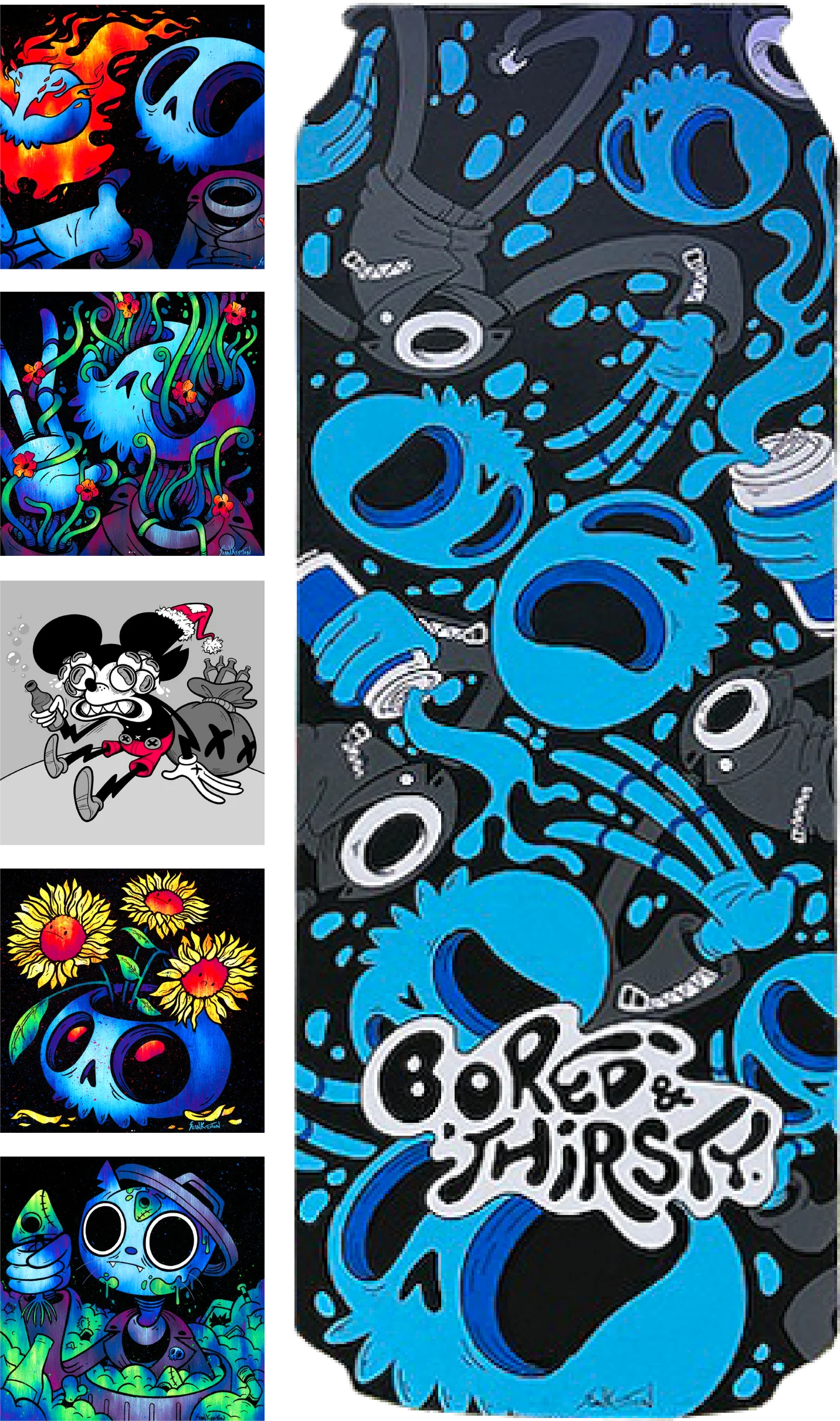 Sean Keeton is a Los Angeles-based gallery artist, muralist, and video game art director. His paintings are a manic, day glo, punk rock celebration of the fact that the very things that make us feel anxious and broken are what make us most relatable and vibrant.